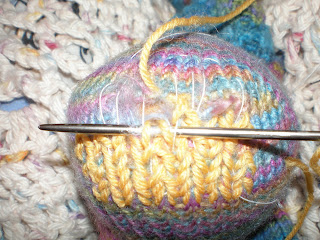 This is the next pic in line. Notice in the pic above this, the yarn tail is coming down from the top? Now it’s coming up from the bottom.