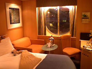 Dawn and I wound up in our room, rather stunned to be there. Unpacked-ish. Visited the buffet (which may have been our last time doing that). Met up for knitting in the bar where we learned that YOU CAN SMOKE INDOORS ON A BOAT. Passed out.