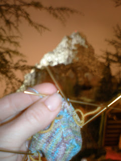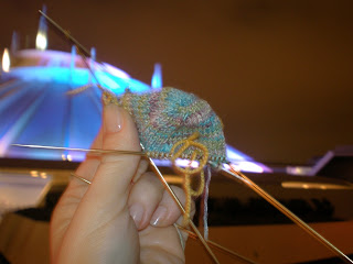 Nice manicure though, don’tcha think? They’re my Bismarck nails. It’s important. Trust me. And the second pic is a little blurry b/c I had to do a night shot, while not blocking riders getting off, while not slowing the line down too much (I didn’t really want to hear “crazy knitter” spat at me), yada yada yada. It all equals “blurry picture”.
