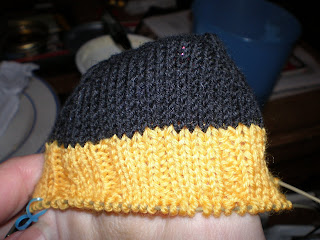 Then we start the bitchen’ heel turn. My sister was sitting next to me when I did this and I told her how even the Yarn Harlot gets all jazzed about how cool it is to turn a heel.